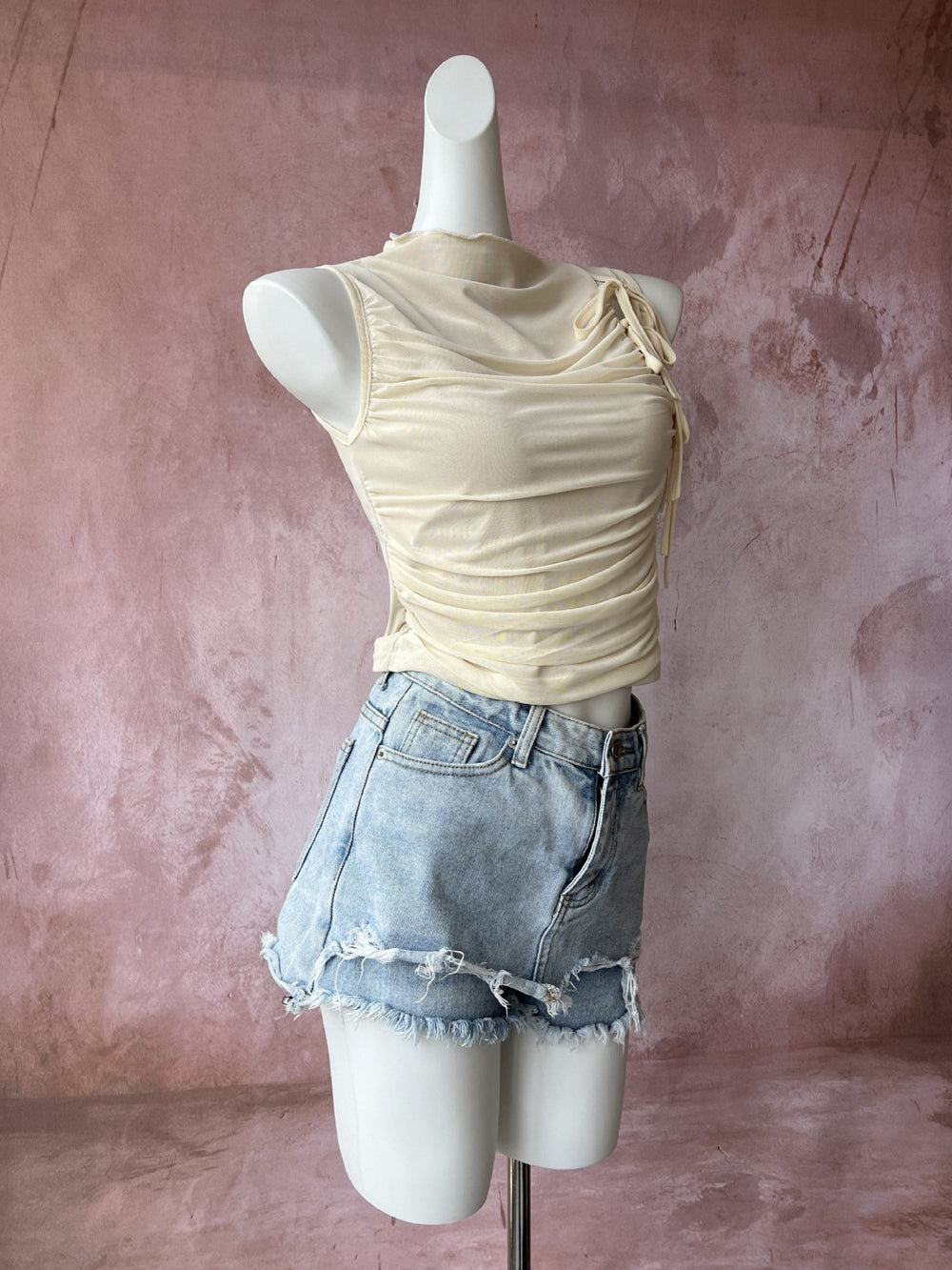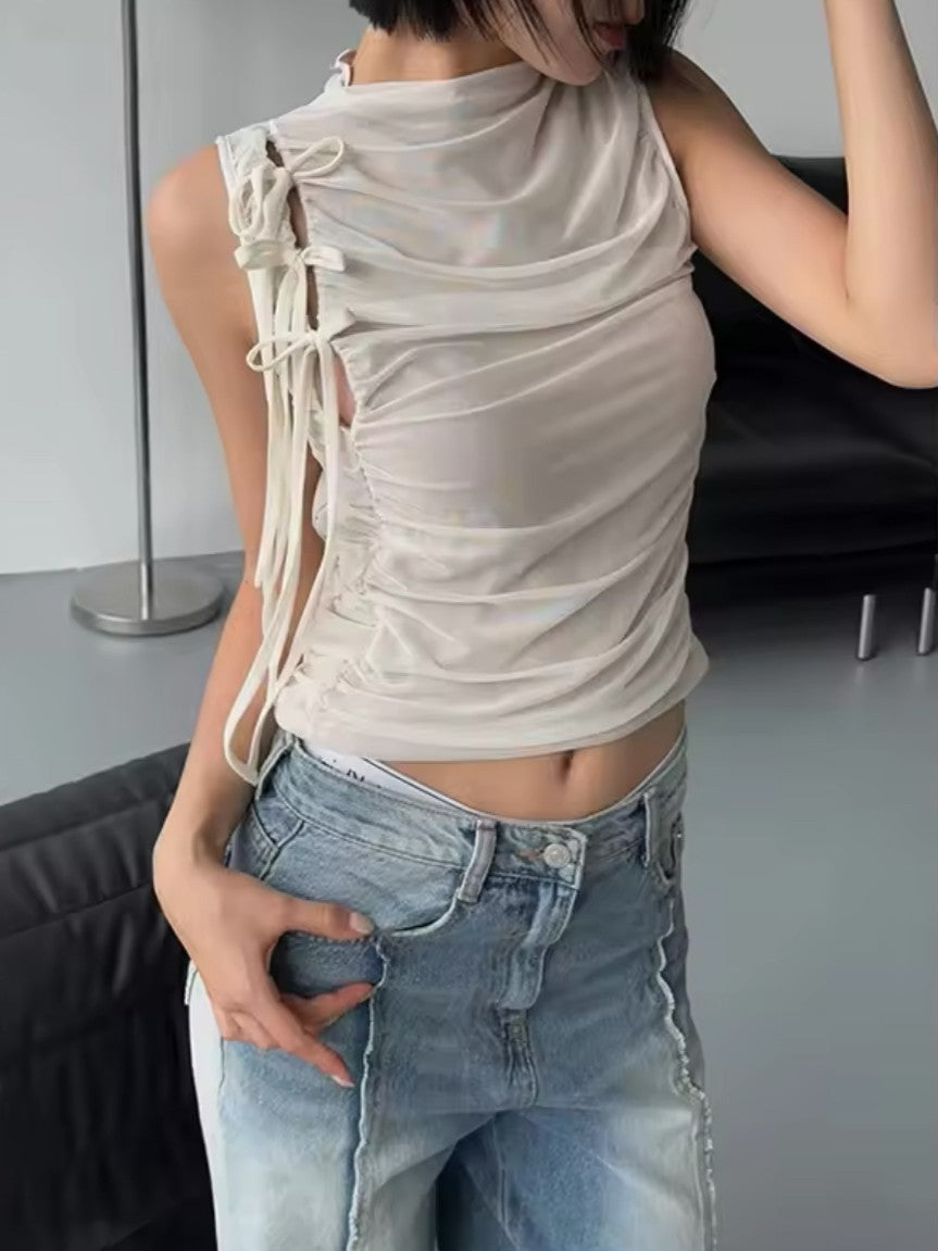 ドレープギャザーリボンチュールタンクトップ