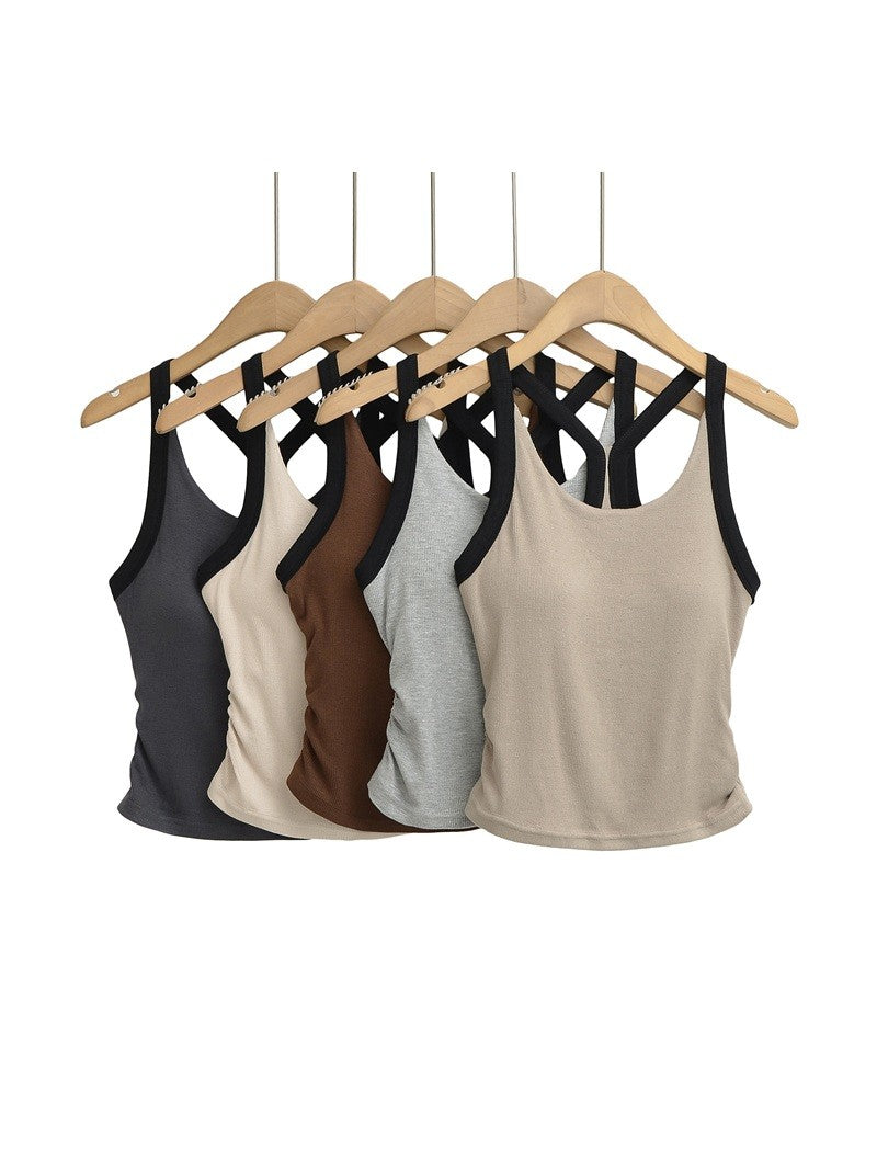 カップ付きバイカラーギャザーリブタンクトップ