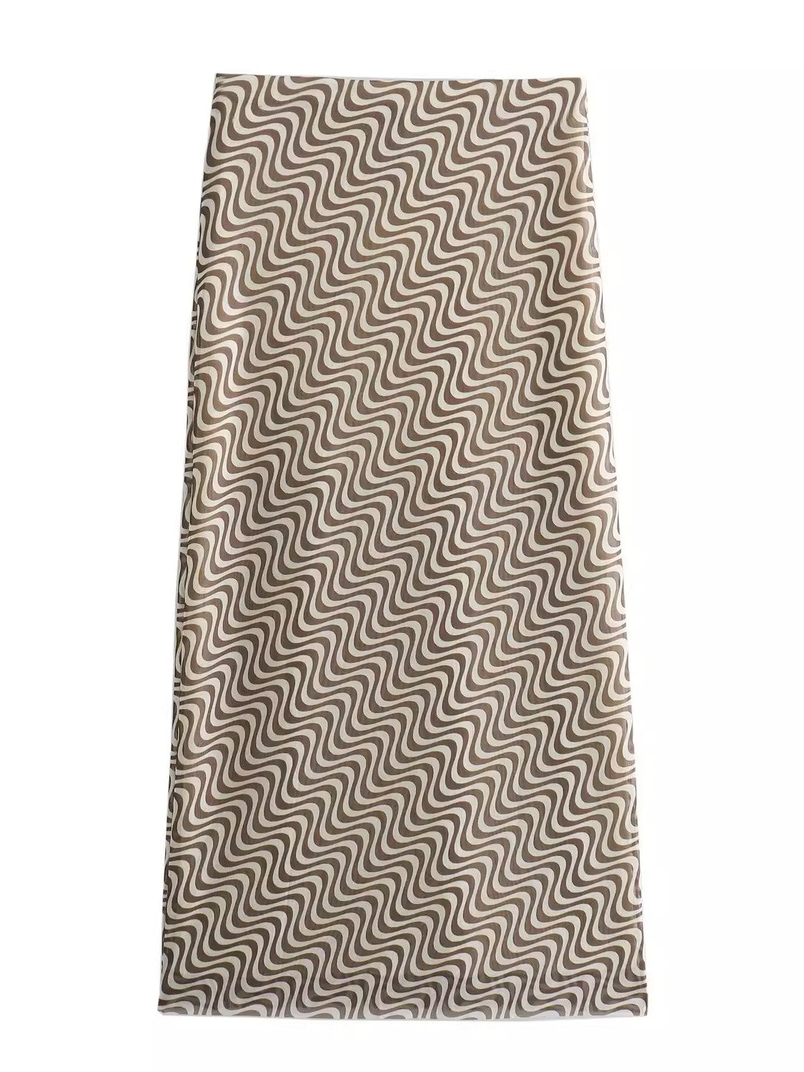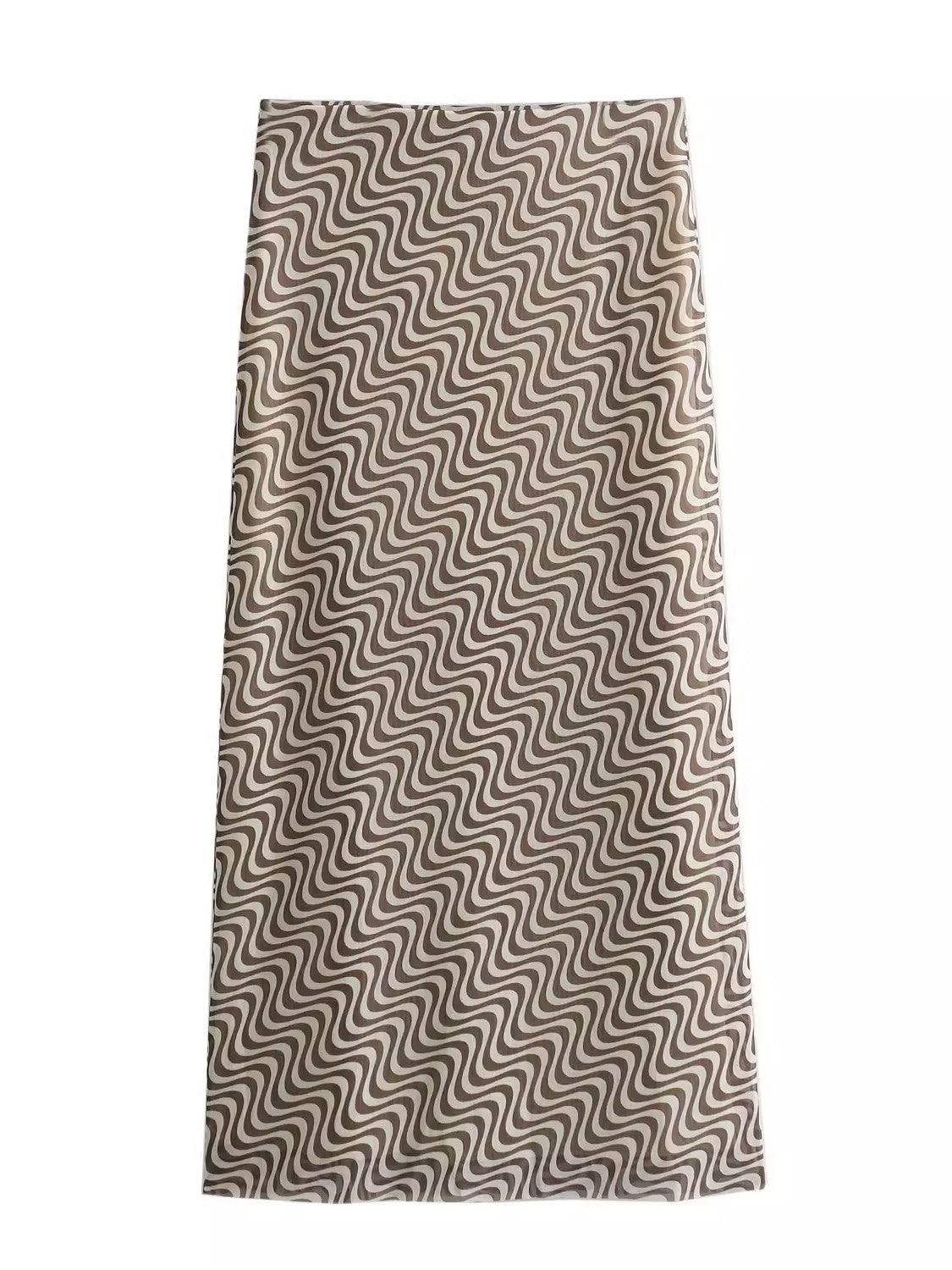 印象的なウェーブ柄が目を惹く、メッシュのミディ丈のロングスカート。